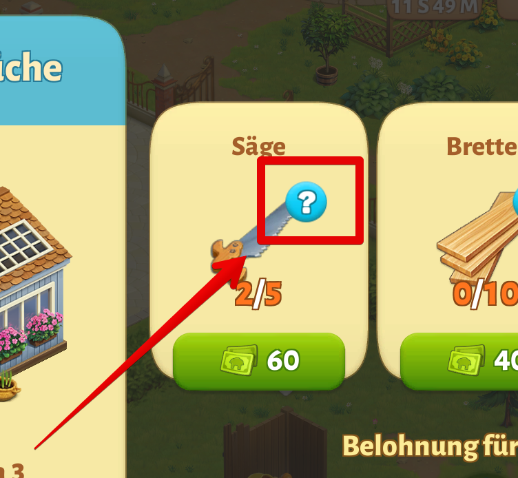 Wenn Sie nicht wissen, wie Sie einen bestimmten Artikel erhalten können, tippen Sie auf das "?" Hinweis-Schaltfläche, um zu sehen, wo Sie ihn erhalten können.