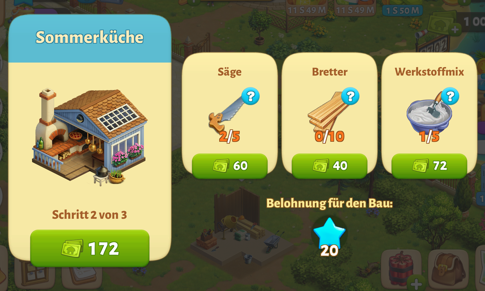 Kaufen Sie das Gebäude und legen Sie es auf beliebigen freien Platz auf Ihrer Farm. Der Boden muss von Hindernissen befreit werden, damit das Gebäude platziert werden kann.