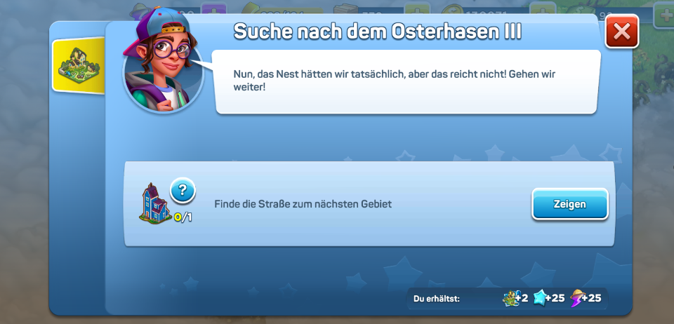 Dann erscheint eine Karte. Tippe auf das Bild des ersten Bereichs, um das Event zu starten.