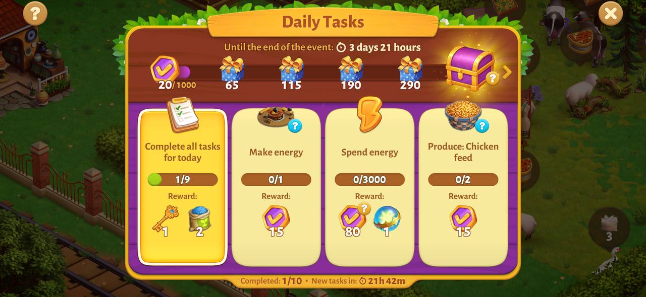 Daily tasks are a great way to earn extra coins, energy, and experience points by completing everyday activities in the game. You can find the Daily Tasks button at the bottom of the screen.