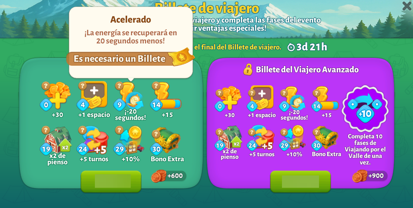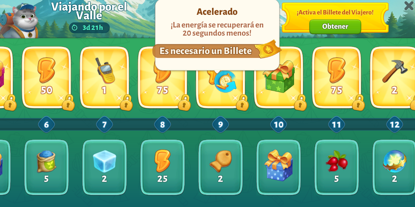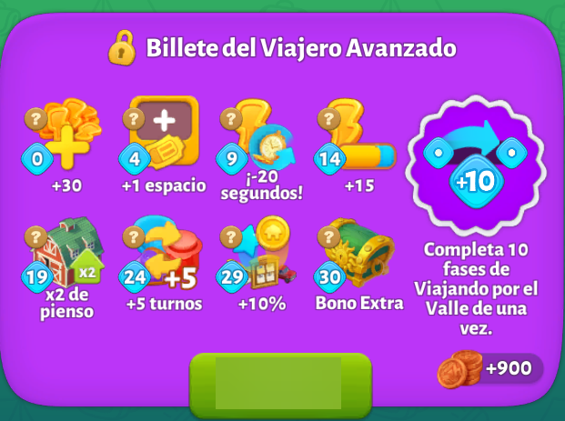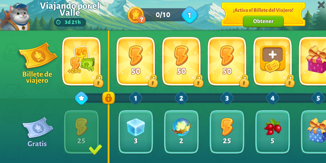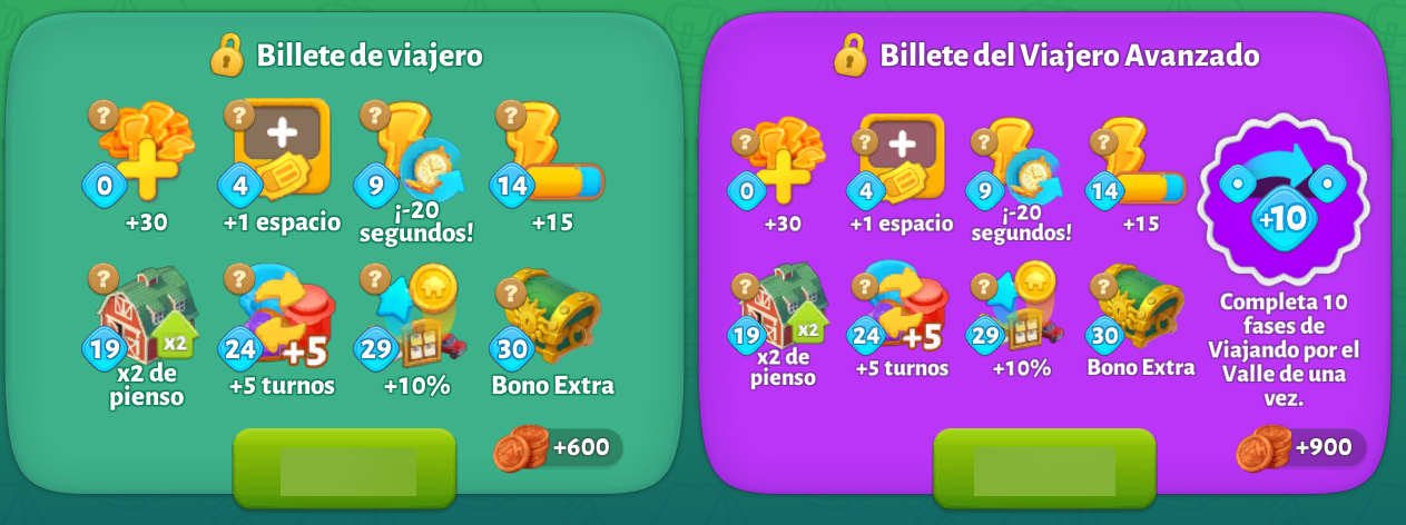 Si activas el Billete del Viajero, tendrás acceso a las recompensas de la fila superior: