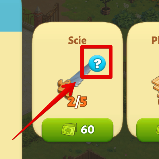 Si vous ne savez pas comment obtenir un certain élément, vous pouvez appuyer sur le "?" bouton d'indication pour savoir où vous pouvez l'obtenir.