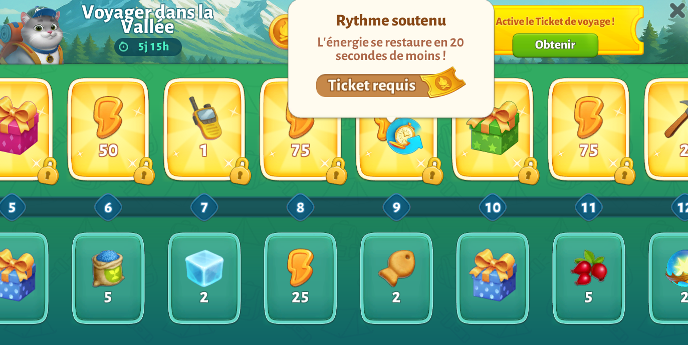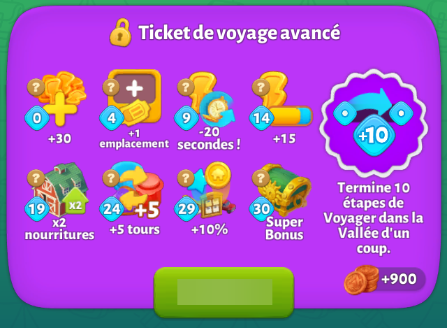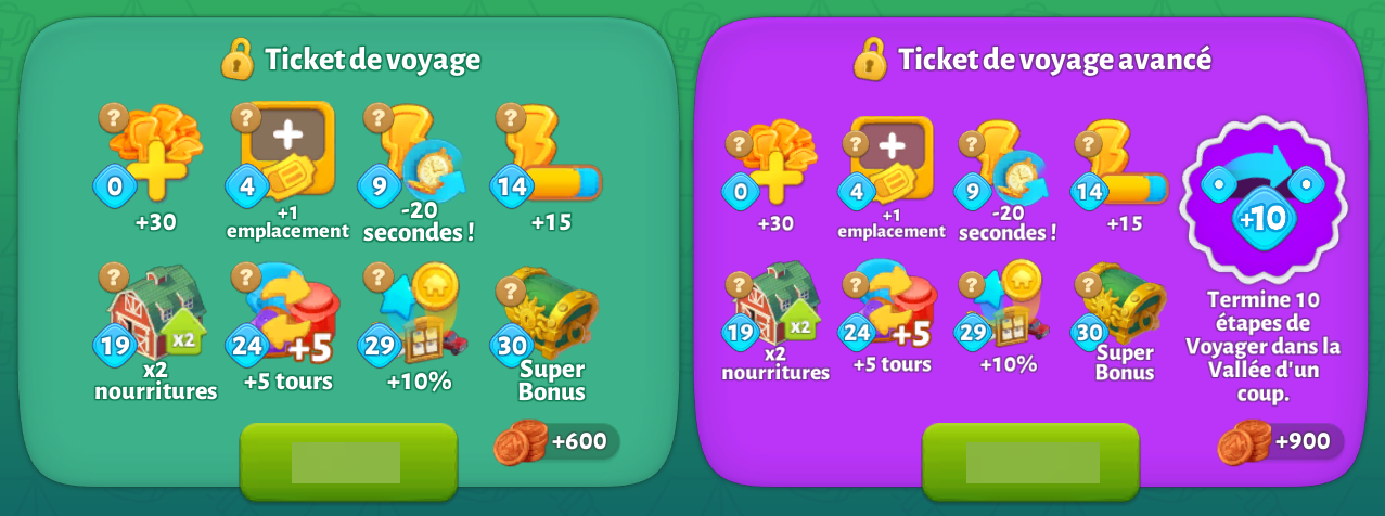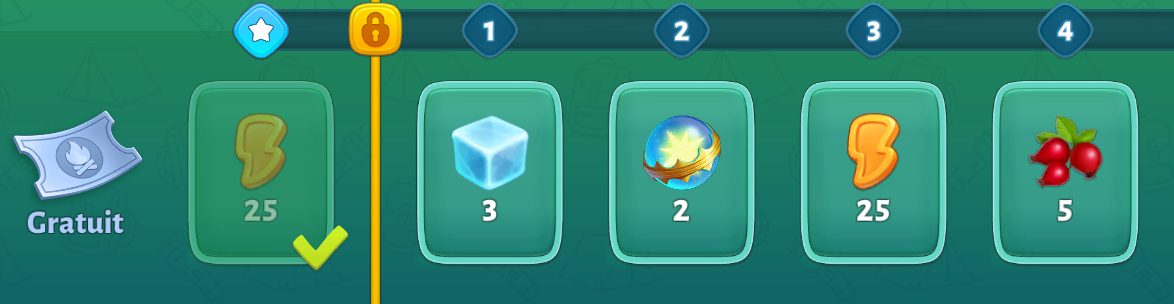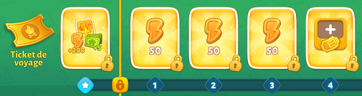 Si vous activez le Ticket de voyage, vous aurez accès aux récompenses de la rangée supérieure :