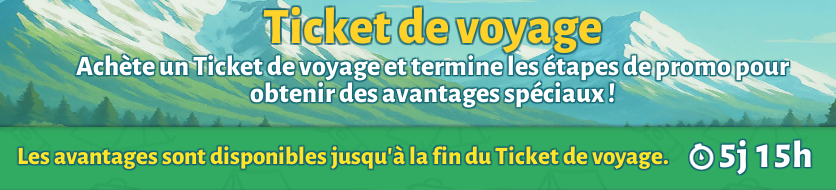 REMARQUE : le Ticket de voyage vous offre des bonus et des avantages supplémentaires pendant toute la durée du Pass saisonnier actuel. Vous pouvez accomplir ses tâches et recevoir des récompenses spéciales jusqu'à la fin de la saison.