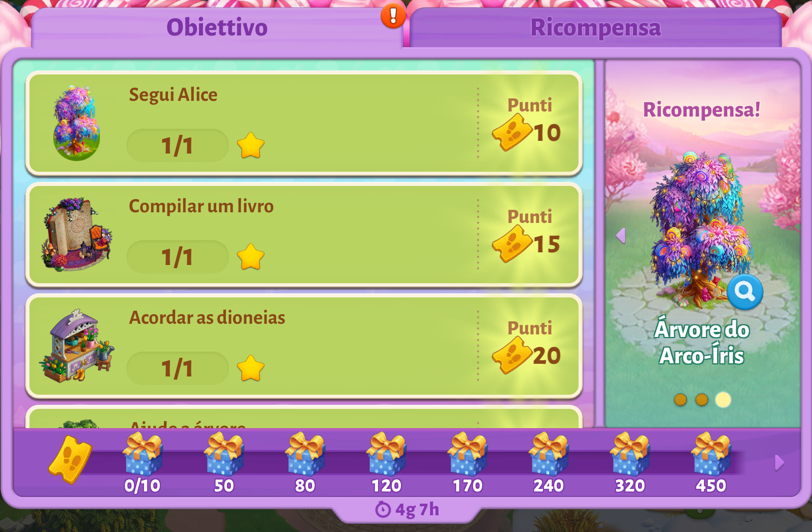 Nella scheda “Ricompense” nel diario degli eventi, puoi vedere le ricompense assegnate per aver ottenuto un certo numero di punti di valutazione. Nella riga inferiore ci sono le ricompense disponibili in qualsiasi momento.