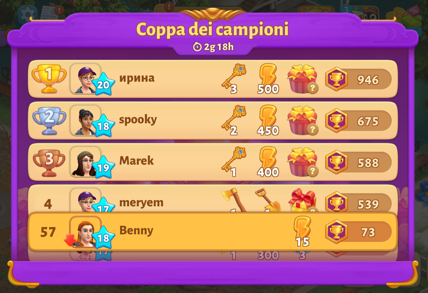 Si noti che la ricompensa finale si baserà sulla posizione raggiunta al termine dell'evento. Il tempo rimanente fino alla fine del torneo è indicato nella finestra della Coppa: