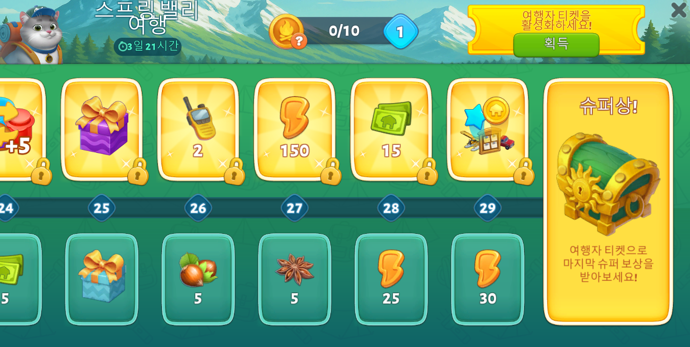 시즌 패스의 슈퍼 상품은 밸리 패스 티켓을 활성화한 플레이어에게만 제공됩니다: