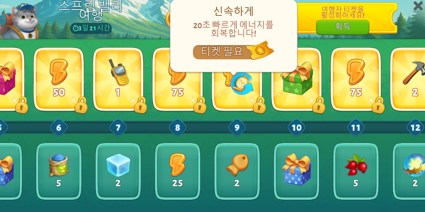 밸리 패스 티켓을 활성화하면 상단 행의 보상을 획득할 수 있습니다: