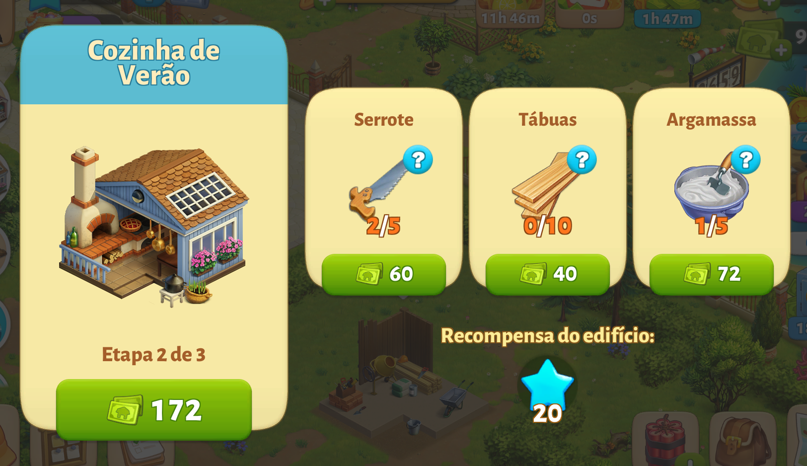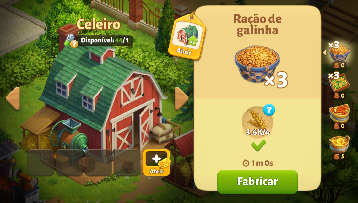 Cada edifício vem com 2 slots de produção. Você pode comprar 2 slots adicionais para um total de 4. Escolha a receita que deseja produzir deslizando para cima e para baixo entre as várias receitas. Depois de escolher a receita, simplesmente arraste-a para o prédio ou use o botão iniciar.