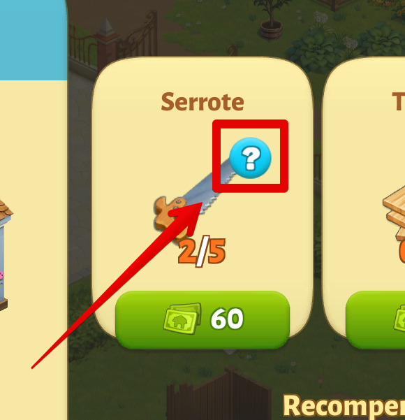 Se você não sabe como obter um determinado item, pode tocar no botão "?" botão de dica para ver onde você pode obtê-lo.
