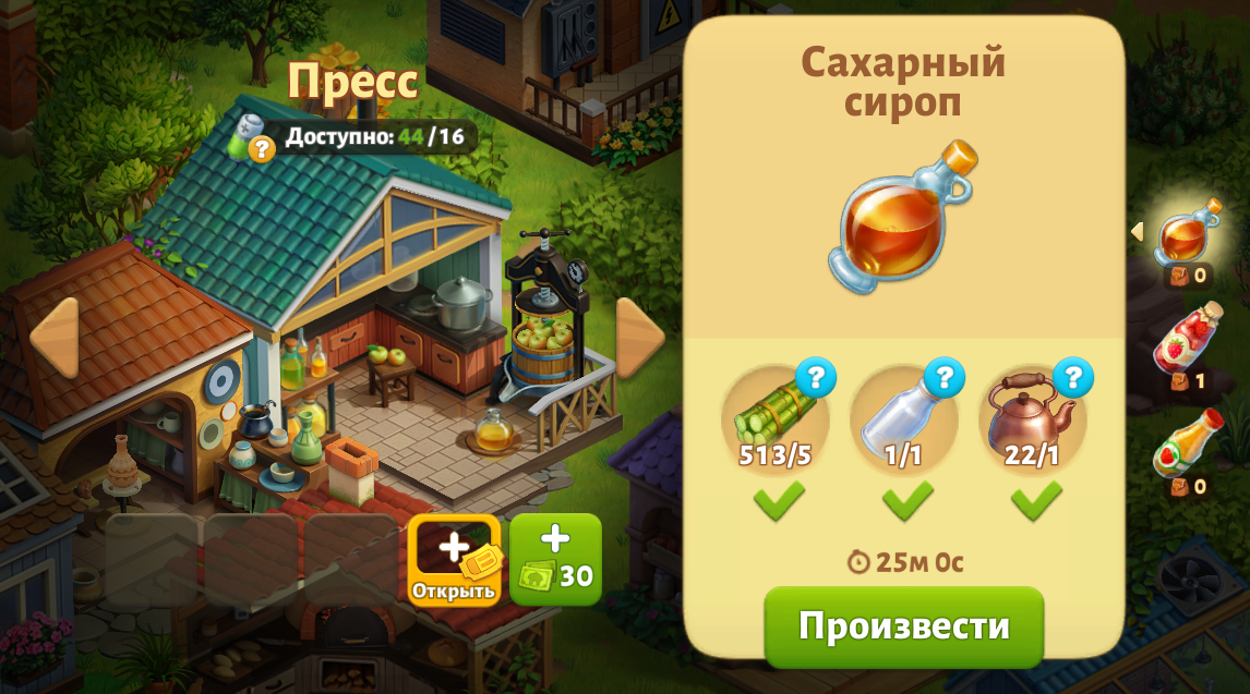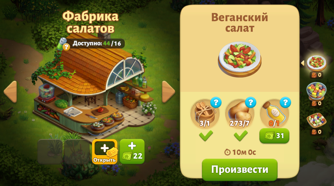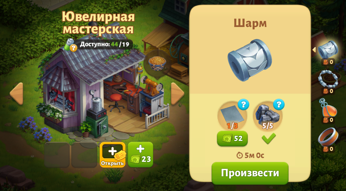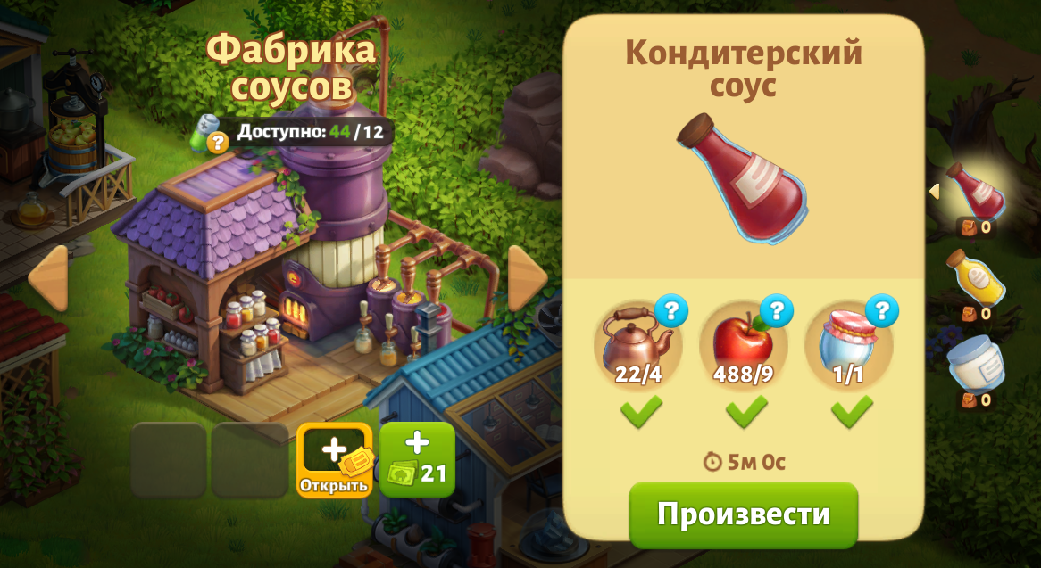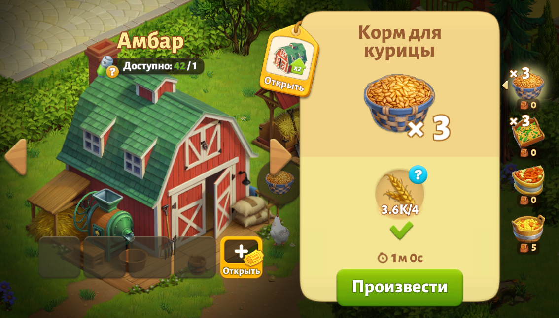 В игре существует множество зданий, в которых вы можете запустить производство различных рецептов и получить полезные ресурсы, которые пригодятся вам на ферме.