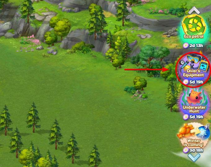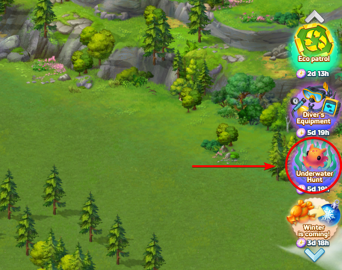 Это событие становится доступным при достижении 15 уровня. Каждое событие длится шесть дней, что дает достаточно времени для игры в удобном темпе. Чтобы войти, посмотрите на правую часть главного игрового экрана, найдите иконку Подводной охоты в меню и нажмите на нее; откроется окно события, где показано все необходимое для начала.