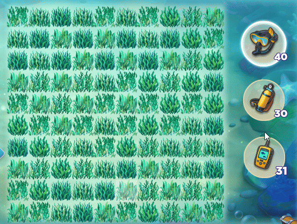 - Акваланг: более мощный инструмент, открывающий несколько соседних клеток сразу; лучше всего использовать на сложных клетках.