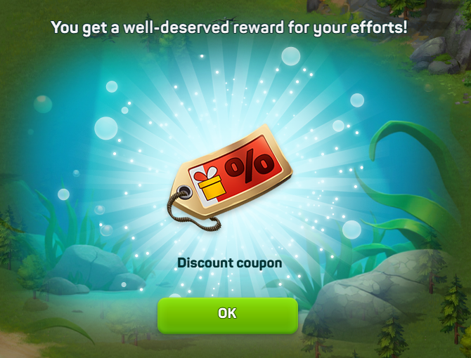 Когда вы нажимаете зеленую кнопку OK, чтобы забрать его, он активируется и запускается 12-часовой таймер. В течение этих 12 часов вы можете использовать купон один раз, чтобы снизить цену на предложения с лопатами/масками в магазине. Если вы не используете купон до истечения 12 часов, он сгорит, и вы не сможете им воспользоваться.