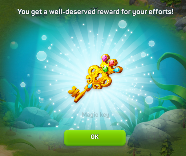 Магические ключи выпадают только из простых клеток (без морских существ). Когда вы получаете Магический ключ, вы можете обменять его на главную награду события.