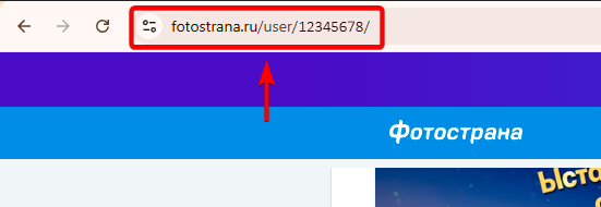 - Там будет написана английскими буквами ссылка на вашу страничку. Она выглядит примерно вот так: https://fotostrana.ru/user/12345678/